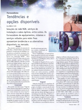 Alcatel, Marco Bassani, serão IP ou ATM Na opinião de Nogueira Terror, os prin longa distância, quase 10% das instaladas