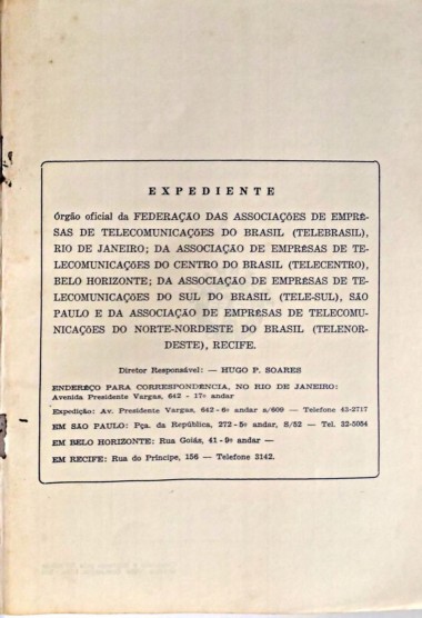 Expedição : A v . P re s id e n te V a rg a s . 6 4 2 - 6 - a n d a r s/ 609 T elefone 43-2717